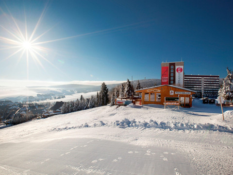 Above Germany's highest city, Oberwiesenthal in the Ore Mountains, is the 3-star Superior AHORN Hotel Am Fichtelberg, located directly on the ski slope.