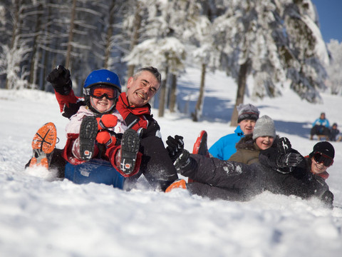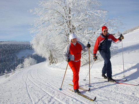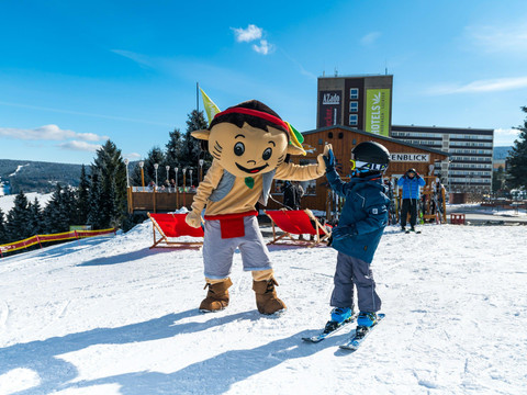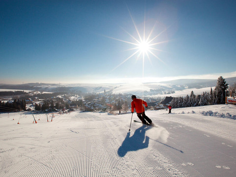 In the Fichtelberg/Klínovec ski area, you can enjoy 19 lift facilities with 47 km of slopes in all difficulty levels. The extensive winter offering is completed by a 146 km long network of cross-country ski trails as well as toboggan runs, night skiing with floodlights, and an ice rink.