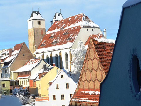 With the help of our Freiberg Webcam, we offer you the opportunity to get a first positive impression of our historical town. It gives you a 360-degree view over the roofs of the city of Freiberg - in real time, of course. The webcam is equipped with its own integrated weather station with data acquisition about Freiberg and thus also serves as a weather cam for your stay in Freiberg. It provides information about the current temperature and wind conditions. In addition, sights and restaurants in Freiberg are already drawn on the panoramic view, which enables you to plan your stay optimally.