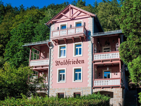 The Bio- and National Park Retreat Schmilka is a small holiday and leisure retreat that almost spans the entire small former riverboat village of Schmilka and is 100% dedicated to the organic concept. It is a so-called "Alberghi Diffusi" (from Italian: scattered hotel) – meaning rooms, apartments, holiday homes, the reception, as well as restaurants, event venues, or workshops are not housed in the same building. The village of Schmilka becomes the actual hotel: the rooms and holiday apartments are not lined up along a long corridor on several floors, but are scattered throughout the entire village.