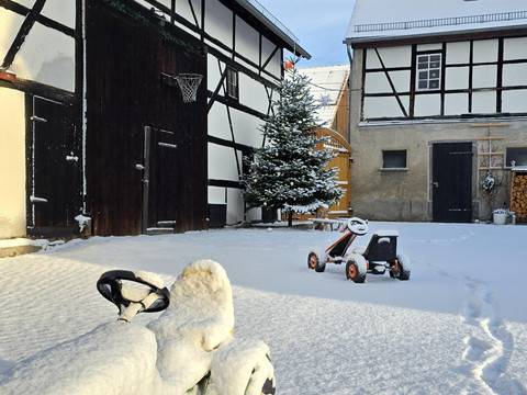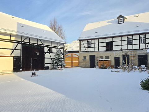 Welcome to our four-sided farm! A stay in old, historic walls awaits you. Our monument farm from 1872 is in a beautiful, relaxing and quiet location in the middle of meadows and fields. Experience the peace and charm of a rural village community in our newly completed holiday apartment. Only 15 minutes by bike separate you from the idyllic Glauchau reservoir and the nearest shops. The A4 motorway and the VW Zwickau factory can be reached in just 5 minutes.