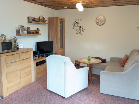 Enjoy restful days or explore the beauty of the surroundings. The holiday home features a cozy living space with a fully equipped kitchenette, 2 bedrooms (1 passing room). The terrace and outdoor seating area are ideal spots for relaxation. For active guests, we offer a bicycle storage place as well as direct access to hiking trails.