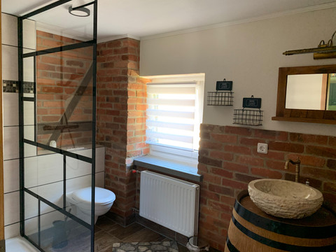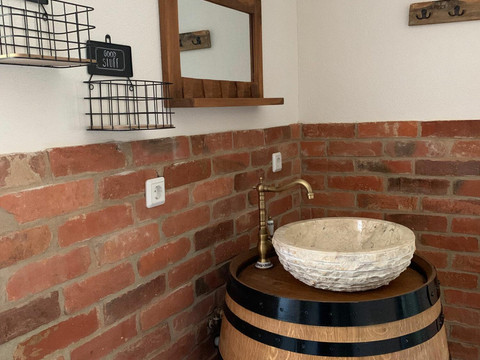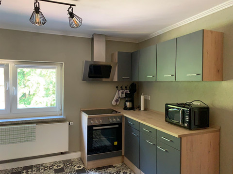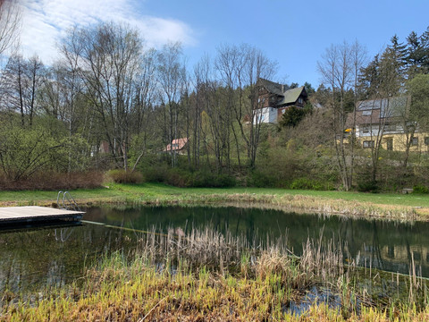 A small but very clear natural swimming pond, about 2 meters deep with bathing ladders, is located about 300-400 meters from the house in the spa park, which is about a 5-minute walk. There is 1 parking space at the house, and additional parking options (for a fee, currently €5.00 per day) are located 300 meters away.