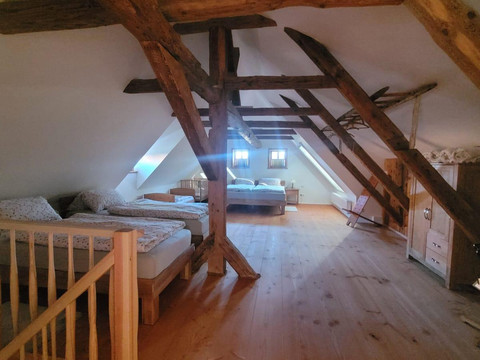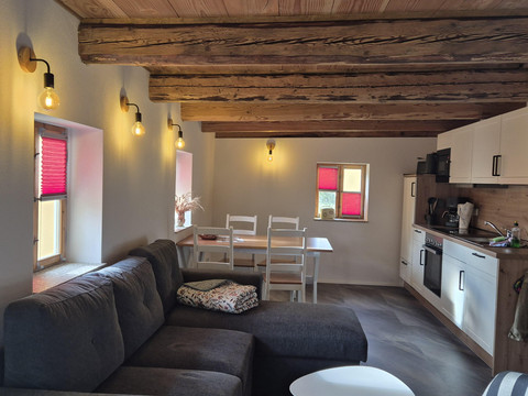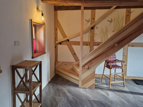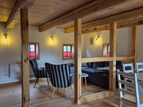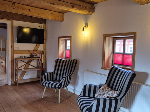 Our holiday home "Hanselhof 26" offers you a vacation in a approximately 400-year-old half-timbered house with much preserved charm and yet new quality of life. We have been able to preserve a lot of the old and have also given many items a second life. The Hanselhof 26 houses 3 holiday apartments, with a barrier-free one on the ground floor suitable for 1-3 guests, and two holiday apartments over 2 floors for 2-6 guests on the 1st and 2nd floors. Parking spaces are directly at the house, and the entrance to the barrier-free apartment can be accessed via a wheelchair-accessible ramp from the courtyard side.