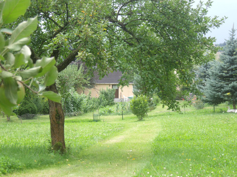Our holiday home is located about 20 km from Dresden, and the bathing beach of the Malter reservoir can be reached on foot in approximately 500 meters. The very quiet location is occasionally disturbed by the crowing of our rooster Seidi.