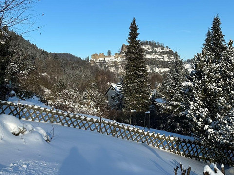 Holiday home in a quiet location on the outskirts of the health resort of Oybin, near the forest, 10 minutes from the center. The apartment is 38 square meters, suitable for up to 3 people and consists of 1 living room, 1 bedroom, kitchen and shower / toilet. There is also an extendable couch in the holiday home. In the garden you can find a barbecue area and a terrace with garden furniture. Parking is possible in the property.