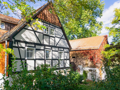 We are Barbara and Thomas Schöpke and warmly invite you to our holiday home "Unter den Eschen". The house showcases its outer appearance in the traditional old natural stone half-timbered style typical of this region, was freshly renovated in October 2023, and completely refurbished inside.