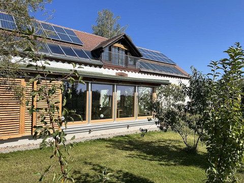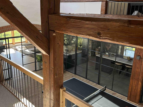 A modern oasis of tranquility for families and small groups has been created from the old farmhouse barn. The Elbe Barnhouse is part of a regionally typical three-sided farmstead. Where grain was threshed and straw was stored 60 years ago, you can now spend relaxed days with your loved ones. Access to the Elbe Barnhouse is via the three-sided farmstead. There are plenty of parking options available. In the back area, there is a terrace where you can enjoy the sun until the evening. Additionally, a spacious green area surrounds the back area, which can be used for playing, sunbathing, or picnicking. Various toys and board games, as well as bicycles (for children and adults), are available upon request.