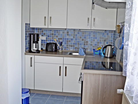 - Fitted kitchen with electric stove, dishwasher, refrigerator, toaster, kettle, coffee machine, microwave, dishes, etc.