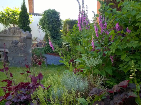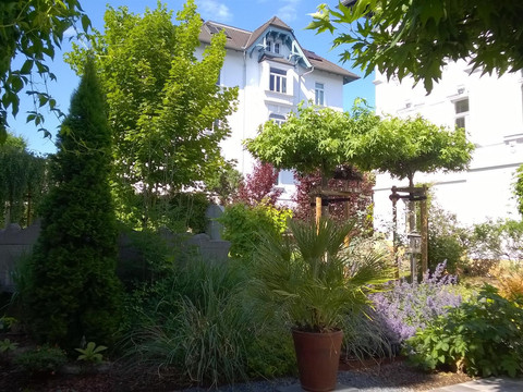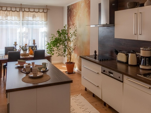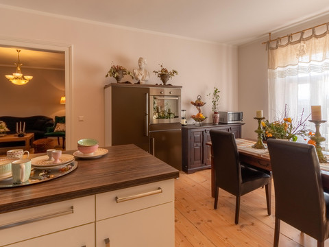 Apartment „Anno 1898“ - a spacious 155m² offers space for up to 4 guests. This comfortably furnished apartment is pleasantly cosy. It is equipped with beautiful wooden floors and two antique decorative stoves. The adjoining veranda and the enchanting garden with its various seating areas invite you to linger and relax.