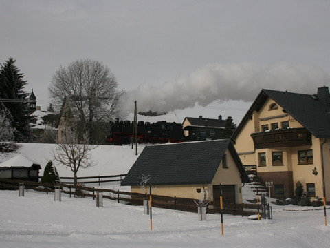 Our house is located in Unterwiesenthal directly on the Bimmelbahn hiking trail, providing direct access to exciting hikes. The Bimmelbahn passes right by our garden.