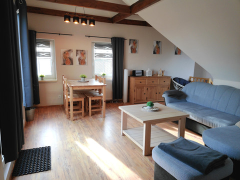 Our apartment is ideal for families and groups looking for comfortable and pet-friendly accommodation. Equipped with a high chair and a crib, we ensure that even the smallest guests have an untroubled stay. For pet owners, we are pleased to offer a place where your four-legged companions are also welcome.