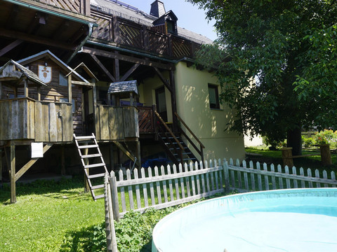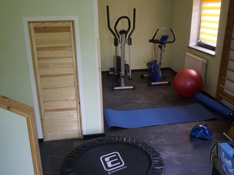 Additionally, there is a table tennis room, fitness room, barbecue area, sauna, grill cabin, large garden with a sunbathing lawn, and swimming pool. Parking is available directly in the courtyard. A large playhouse, sandbox, as well as trampoline and plenty of space for playing will delight every child's heart.