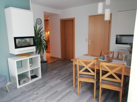 Our vacation apartment, with a view of the Fichtel and Keilberg, offers you the perfect starting point to get to know our beautiful Ore Mountains. We have newly furnished the 65m² vacation apartment, designed in a modern, loving, and cozy way.