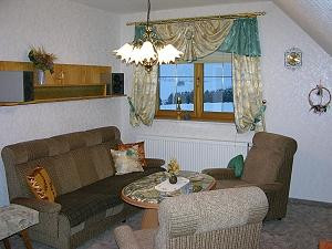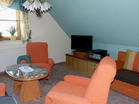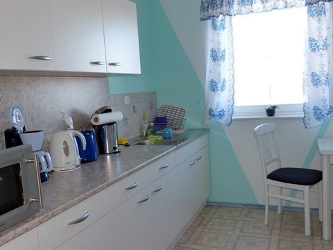 Single-family house with holiday apartment on the 1st floor, comfortably furnished, on the outskirts of Annaberg-Buchholz in a quiet location with a breathtaking view of the Erzgebirge ridge. Approx. 65 sqm, bedroom (double bed), separate kitchen with kitchenette, refrigerator, oven, electric stove with 4 burners, coffee machine, kettle, toaster, microwave, sufficient dishes, small dining area. Separate dining area for 6 people with a fantastic view of the Fichtelberg! Access to the balcony.