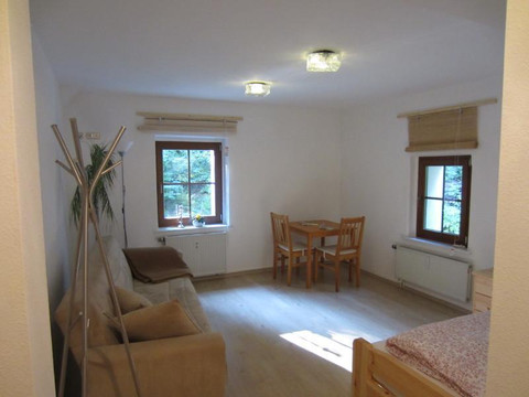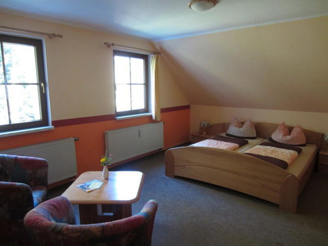 Our apartment is located in a beautiful forest location in the climatic health resort of Lückendorf. Directly at the house, a hiking trail leads you on wonderful excursions with limitless possibilities. Spread over 2 floors are 4 bedrooms, each with a separate shower/WC. On the ground floor is the kitchen where you can cook, bake and eat to your heart's content. The common room can accommodate up to 12 people. On the terrace you can relax in nature.