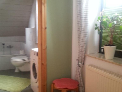 The living room and the 2nd bedroom (for a 3rd person) each have access to the shared loggia; the 2nd bedroom also has an additional WC on the ground floor. The apartment extends over the entire 1st floor of the house in a quiet, forest-rich outskirts location with beautiful views of the town of Annaberg and Pöhlberg.