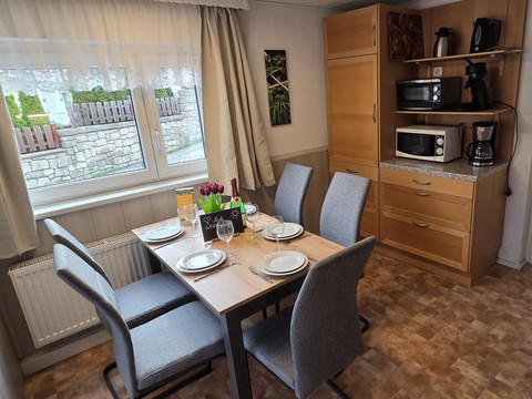 We offer you a cozy holiday apartment in the greenery. The fully equipped apartment features 1-2 bedrooms, kitchen, living room, play area, and a bathroom with a bathtub. The kitchen is equipped with a stove, ceramic hob, mini oven, kettle, dishwasher, refrigerator, microwave, coffee maker, and a toaster. The seating area accommodates up to 6 people.