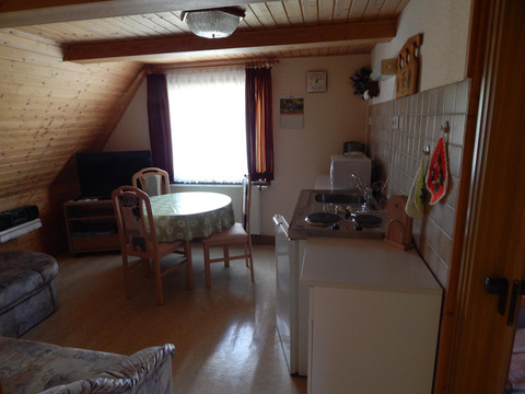 The apartment is situated on the upper floor and offers a wonderful view of the Geisingberg.