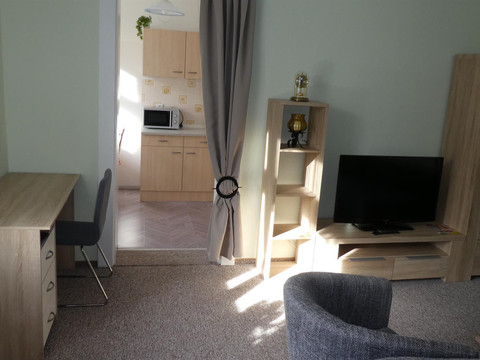 Holiday apartement for two persons (45 m²), located close to the centre of Zittau, a short walk from the main station and the station of the narrow-gauge-railway. Parking space available, also for motorbikes and bicycles. Garage possible (5,00 € p.d.). A coffee-shop with breakfast offer is in a distance of 50 m.
