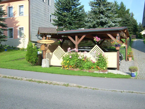 This is a spacious holiday apartment with a panoramic view of Fichtel and Keilberg. The holiday apartment consists of a cozy furnished living room with TV and radio, 3 separate bedrooms, a spacious kitchen with dining area and dishwasher, as well as a bathroom with shower and toilet. Bed linen, table linen, and towels are provided. A carport is available on the property. Garden and terrace use is possible. In winter, toboggan rental is available.