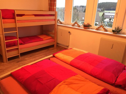 2nd bedroom with box spring bed. Beautifully located with a view of Pöhlberg.