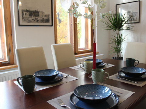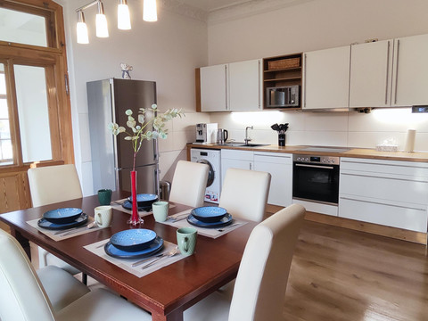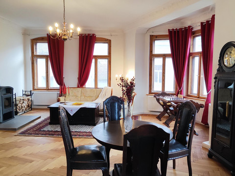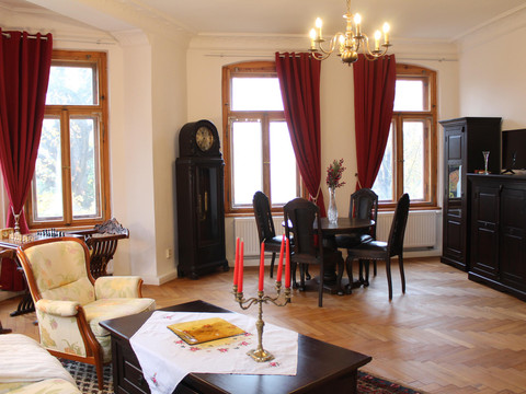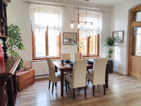 Let yourself be enchanted by lovingly selected Art Nouveau ambiance in 130 square meters, enjoy the tranquility by the crackling fireplace, play a game with your loved ones at the historic chess table, and discover the unique combination of nature and culture in the tri-border area of Zittau. A journey of relaxation and inspiration.