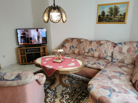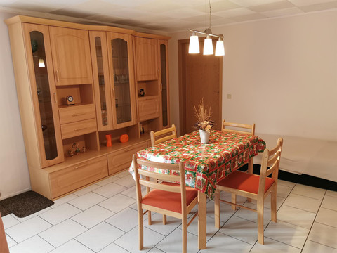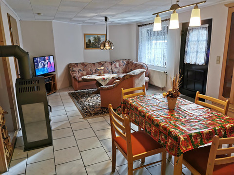 Our holiday apartment is located on the outskirts of the town of Schwarzenberg. It is quietly situated near the forest and meadows. Here you can relax, hike, cycle, and ski in winter. The historic old town center is about 1.5 km away, which is a 10-12 minute walk. The holiday apartment consists of two living rooms and a room for a toilet/washbasin and shower. You have a separate entrance to the house. Right in front is the parking space for 2-3 cars.