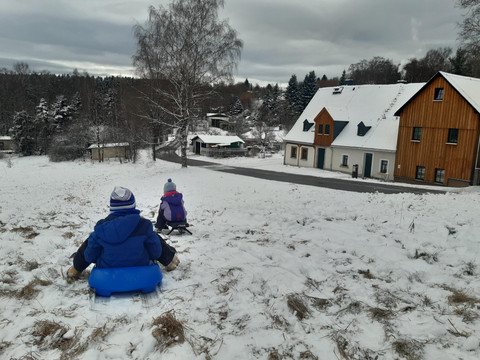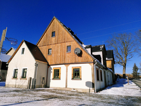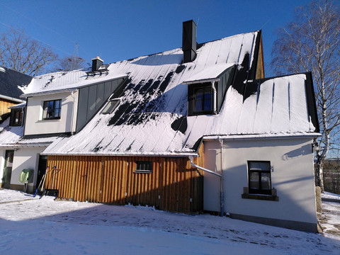 If you are staying with several families, you can use the kitchen and the historic room on the ground floor as communal spaces when booking the holiday apartment "Ergebirgsmeer." Enjoy meals together, laugh together, sit by the fireplace together and enjoy together.