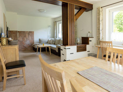 You will stay in a holiday home with 2 apartments in modernly furnished 3-room apartments, bathtub/shower, toilet and kitchen on approximately 60 m² with a view of the ski slope in the district of Carlsfeld, Obere Gasse 15; 08309 Eibenstock