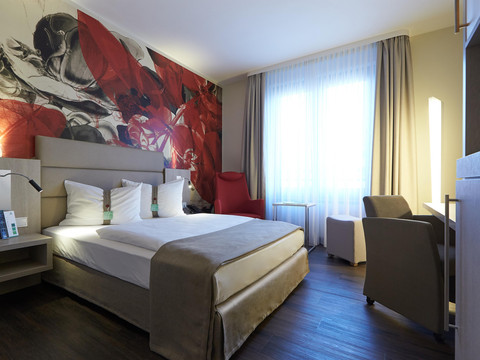 The hotel in the city center features 128 air-conditioned and modern guest rooms. All attractions are within walking distance. Amenities include a pillow menu, free high-speed internet, complimentary coffee and tea making facilities, a Sky Movie TV channel, minibar, and a mini gym. Each of the 5 floors is designed in its own style. The hotel offers "art rooms" with original graffiti by prominent residents of Zwickau behind the headboards. These include Robert and Clara Schumann, August Horch, Gerd Fröbe, and Max Pechstein. The suites with 2 bathrooms and separate living and sleeping areas meet the highest standards. The hotel has 3 restaurants and conference rooms for up to 200 people. Guests appreciate not only the facilities but especially the warmth of the staff. Many attractions, such as St. Mary's Cathedral and the Robert Schumann Birthplace, are just a few minutes' walk from the hotel.