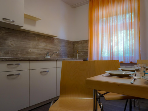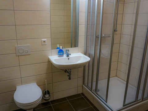 Our guest house is aimed primarily at groups and school classes looking for modern and affordable shared accommodation. We can accommodate up to 84 people in 10 double rooms and 16 four-bed rooms. A family apartment with 4 comfortable beds, a small kitchen and private bathroom invites you to a relaxing holiday. We have 6 event rooms for up to 80 people. The rooms can be rented individually for family celebrations, but also for conferences, seminars, etc. Our kitchen offers a wide range of breakfast, half board and full board. People with limited mobility can spend relaxing and carefree days with us. Bringing pets is possible on request. WiFi is available free of charge. We look forward to seeing you!