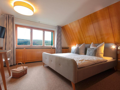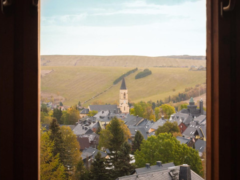 Due to the position of our Haus am Berg in 950 meters in height most of the rooms have an astonishing view over the city, the Fichtelberg mountain or the nearby Czech Republic.
