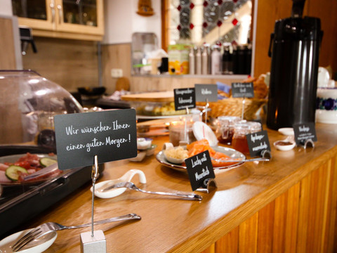 You can relax not just in one of the comfortable equipped rooms, but also in the sauna or in the outer area of the bed and breakfast. Under the motto „holiday with heart“, we provide the best services: a children playroom, a heated ski storage room, cooled beverages and free parking spots. You'll have a sumptuous breakfast at our cozy breakfast room. You’ll find some restaurant around 7 minutes towards the city center.