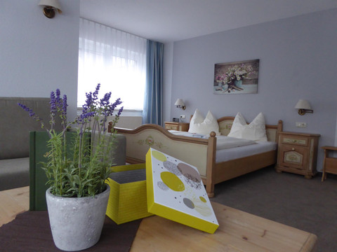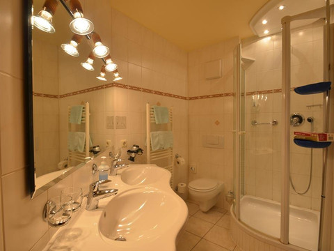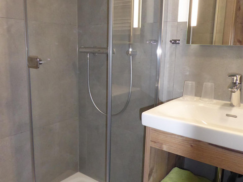 Comfort rooms furnished in a modern Ore Mountain style, walk-in shower, HD-TV, and Wi-Fi.