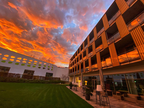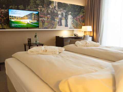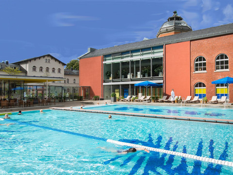 108 modern rooms, restaurant with terrace, cigar lounge, hotel bar with cozy lobby, 3 conference rooms (up to 120 people) with foyer & terrace, public parking garage with direct access to the hotel, hotel-owned bathrobe corridor to the saltwater thermal spa with sauna area and to the historic Albert Bad with wellness center