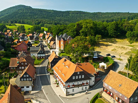 The historic hotel is located in the resort of Waltersdorf in the midst of the Zittau Mountains Nature Park. The listed half-timbered house was built 170 years ago and was converted into a 3-star feel-good hotel in 1999 through a restoration.