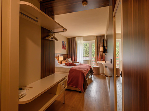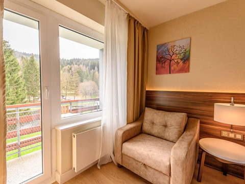 Embedded in the Erzgebirge/Vogtland Nature Park, near Erlbach and the music city of Markneukirchen, lies the historic and recently renovated Hotel Schwarzbachtal Hideaway. Located in the middle of the forest, it offers its guests a cozy and charming accommodation. Here you can enjoy comfortable lodging and excellent cuisine, as well as a variety of events and activities in the vicinity that are offered year-round. The most popular activities include hiking, cycling, and walks through the incredibly beautiful forest. In snowy winters, cross-country skiing is a popular activity, and you have easy access to a nearby ski center. Most hotel rooms offer balconies with views of forests and lakes, while larger comfort rooms provide a charming forest view. Start your day at Schwarzbachtal Hideaway with a hearty breakfast buffet and enjoy a delicious buffet in the evening.