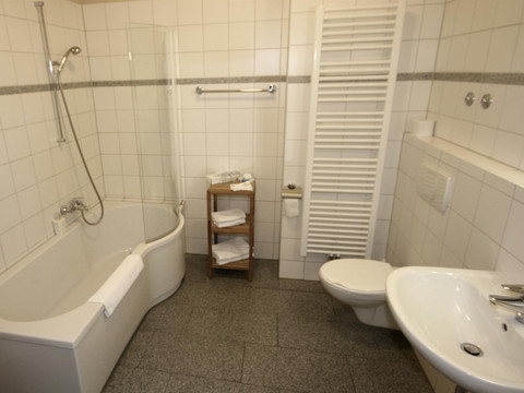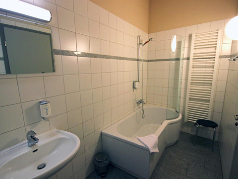 The 12 modernly furnished hotel rooms, easily accessible by elevator, feature a bathtub or shower, TV, telephone, free Wi-Fi, and hairdryer.