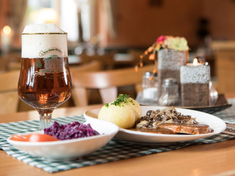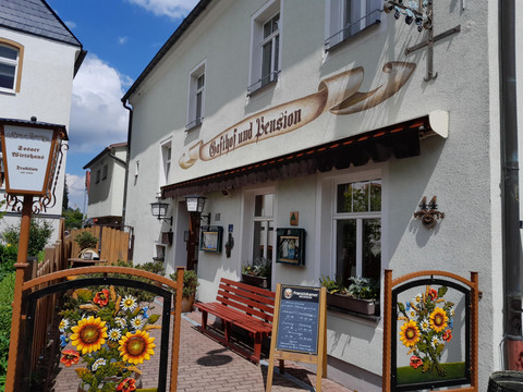 Experience the magic of the Erzgebirge at the Country Inn Zum Schützenhaus Sosa, where good gastronomy has a long tradition. Our house has been run by the family for 3 generations and features cozy dining rooms, an inviting farmer's hall, and comfortable guest rooms. Surrounded by the gentle hills and stunning nature of Eibenstock, our house offers a retreat that invites you to enjoy and explore.