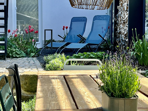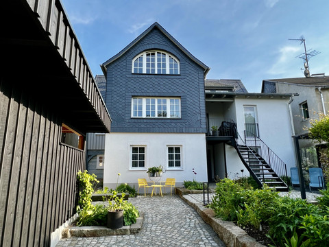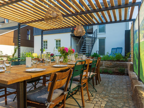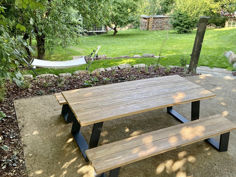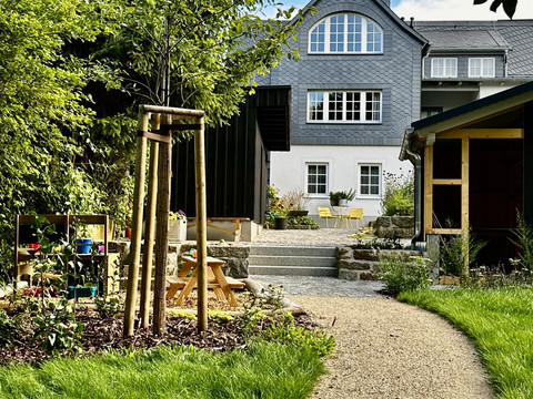 Three spacious apartments. Modern design framed by historic half-timbering. A vast garden. Plenty of space to feel comfortable, breathe, and enjoy. A temporary home. For soul searchers, everyday escapees, and collectors of joyful moments. Warm welcome!