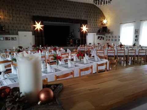 The cozy dining room invites you to enjoy affordable, traditional cuisine with a rich menu and changing daily specials. A second dining area is available for family celebrations or as a lounge with TV. Regularly, about 100 guests gather for various events in our hall. Our cozy beer garden is often a destination for numerous hikers.