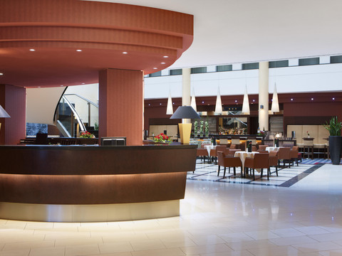178 elegantly furnished rooms and 7 suites with bath/shower/WC, hairdryer, cosmetic mirror, high-speed WLAN, desk, telephone, TV with radio and alarm function, safe for laptops, and self-regulating air conditioning. Restaurant, bar, 24-hour room service.