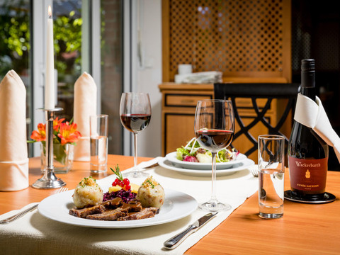 Enjoy quiet nights – if you want, you can even sleep with the windows open. Start the day right with our much-praised indulgent breakfast buffet and treat yourself to some local Saxon delicacies in the evening in our hotel bar and restaurant. Take a moment to rest and unwind in our sauna. Even your arrival promises to be relaxing – whether you come by car, bus or bike, you will find a good parking spot near our hotel.