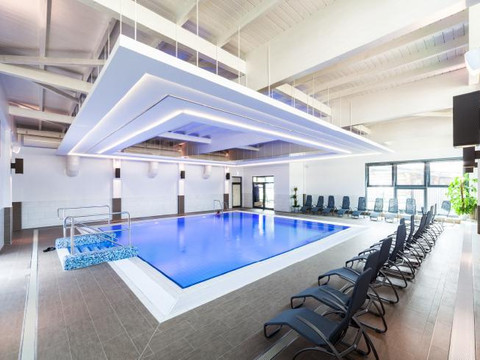 tube slide, lazy river, whirlpool, and saltwater pool with brine evaporation tower. In summer, the