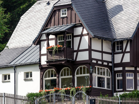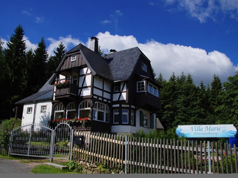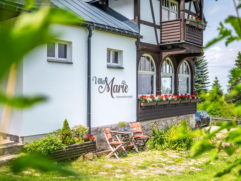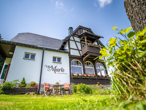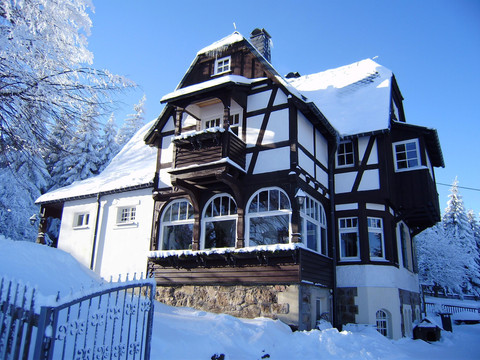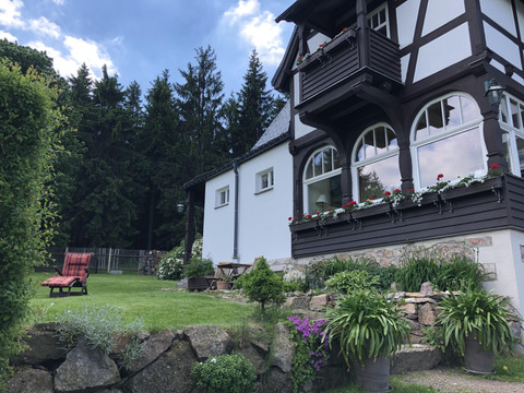 The listed villa offers a quiet location, charming views, and 3 lovely holiday apartments. Over a hundred years of changing history shape the country house in Oberbärenburg. Renovation meant here the appeal of creating historical spaces along with a bright and livable structure under modern and ecological considerations. The room names Swallow's Nest and Heaven's Realm from the past, complemented by the Stag as a synonym for the villa, today bridge the gap to the three holiday homes for up to 3, 4, or 5 people and a total of 12 happy vacationers!
