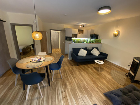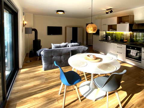 Two accessible holiday apartments offer our guests the best comfort at a high level. A private entrance, two separate bedrooms, a living kitchen with a separate terrace and large panoramic windows, internet-capable large TV screen, barbecue facilities, and a private fireplace with free firewood.