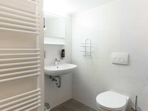 Apartment shower/toilet/living room with