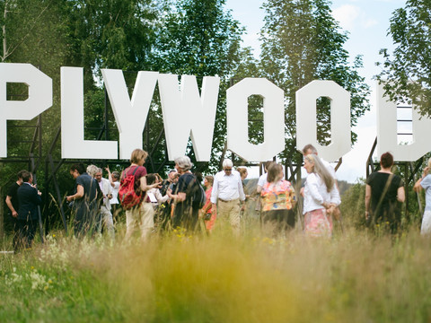 With his large-format sculpture Plywood, made from powder-coated sheet steel, artist Jay Gard ironically combines the world-famous Hollywood landmark with the history and disappearance of wood and copper production in Olbernhau. Jay Gard was born in Halle/Saale in 1984 and grew up in Karl-Marx-Stadt (Chemnitz). He now lives and works in Berlin.