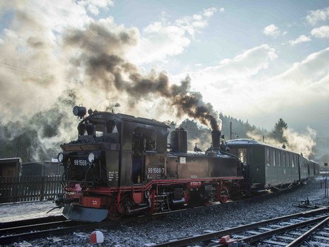 Thanks to the historical events of 1989, in 1990 energetic members of the Interessengemeinschaft Preßnitztalbahn e.V. association began rebuilding a section from Jöhstadt on a voluntary basis. 2000 saw the ceremonial opening of today's entire line from Steinbach (543 m above sea level) to Jöhstadt, and since 2021 the tracks have once again been laid directly in front of the historic station building in Jöhstadt. Slow down today on a tranquil steam train ride like in your grandparents' day. Treat yourself to a cold/hot drink in the buffet car, perhaps a freshly tapped Pils from the barrel and enjoy the passing nature, which offers its very special charms at any time of year.